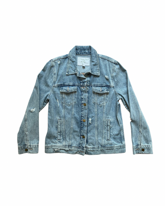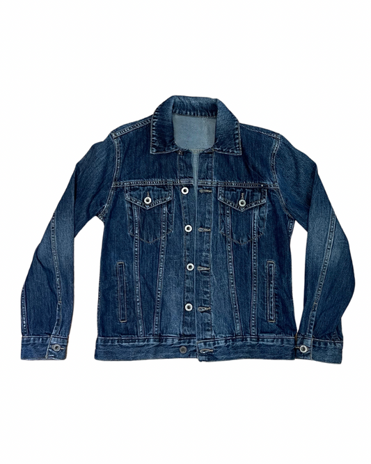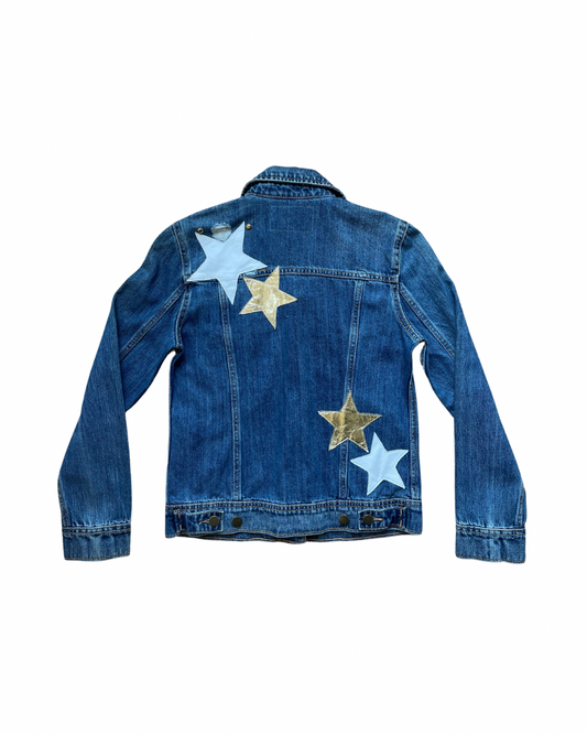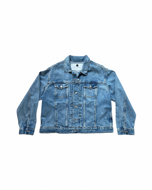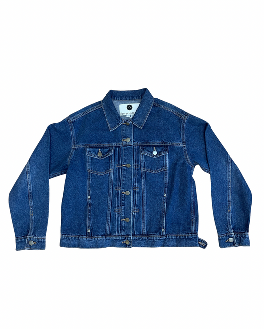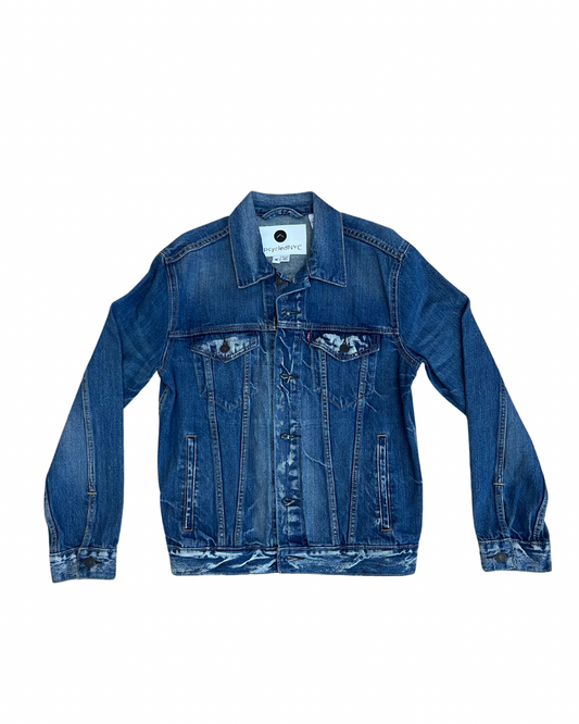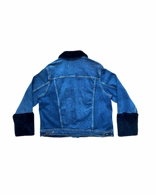 Upcycled Denim Jacket - Navy Shearling Cuffs
