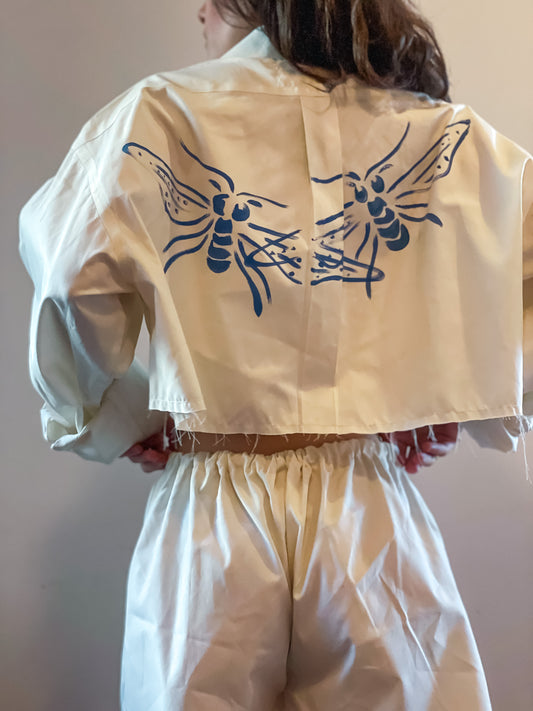 UpcycledNYC X ByBoulukos Button-down Short Set - Bees