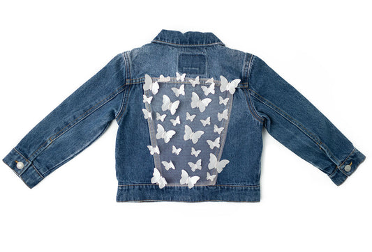 Butterfly Kisses Upcycled Denim Jacket- Kids