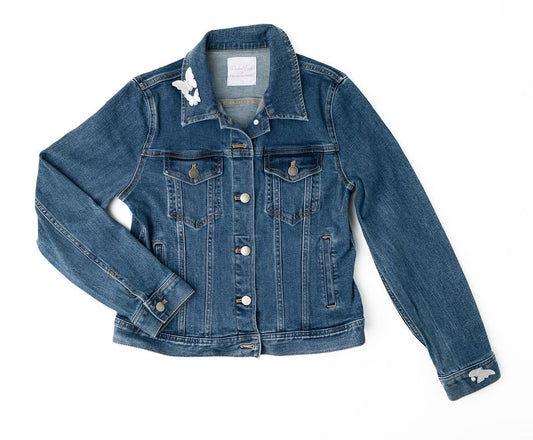 Butterfly Kisses Upcycled Denim Jacket - Adult